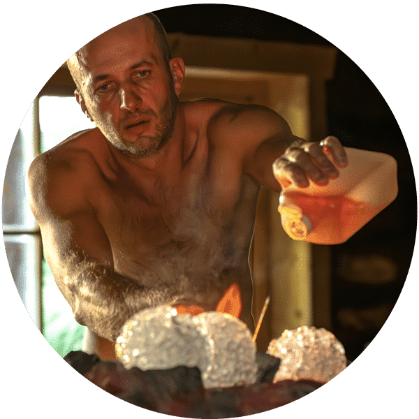 „Wenn die Stimmung passt, lege ich beim Eis-Aufguss noch eins obendrauf. Dann bekommen meine Gäste eine Feuer-Show mit flammenden Eis-Bällen präsentiert. Das braucht viel Übung, deshalb mach das auch nur ich.“